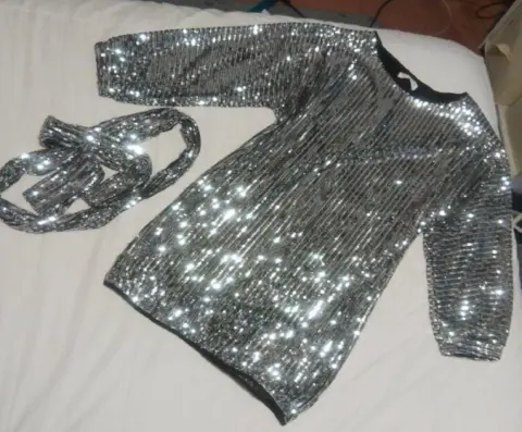 Hermosos vestido de fiesta plateado lentejuelas