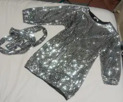 Hermosos vestido de fiesta plateado lentejuelas. Vestido corto de lentejuelas, con cinturón de la misma tela, hermosos para fiesta, graduación, súper bonito y como nuevo. Solo usado una vez.