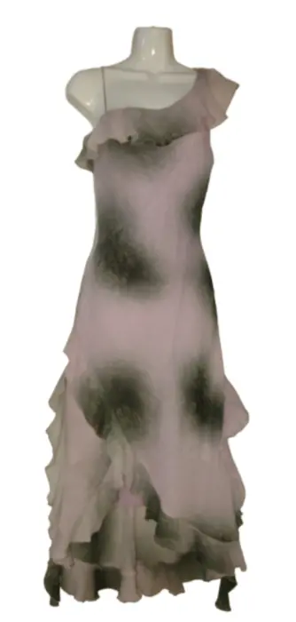 Lila y negro. Bonito vestido de tirantes con olan al pecho muy coqueto pero reservado se ajusta lindo a la silueta es a 3/4 no es súper largo pero tampoco es corto, sus colores y estilo invitan a una reunión familiar o una fiesta de jardín...