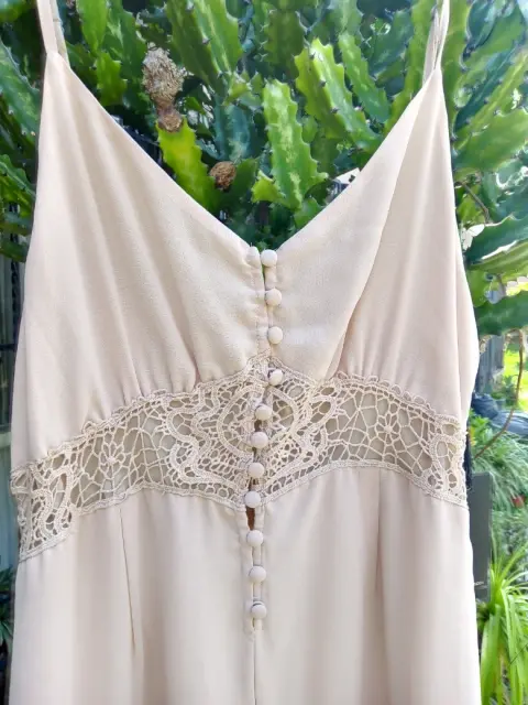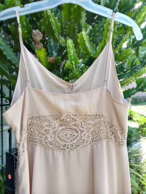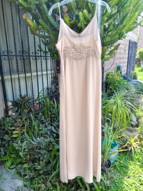 Lindo vestido. Lindo vestido de tirantes con aplicaciones encaje en cintura, colo baige, talla grande