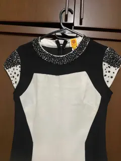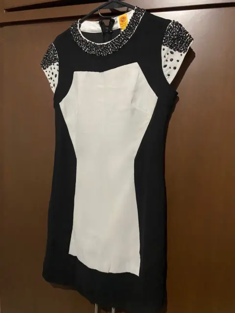 Talla M vestido corto con bordes drapeados de Piedras Negras poliéster hecho en India marca Priya concepto Indu Hermoso☺️ fresco