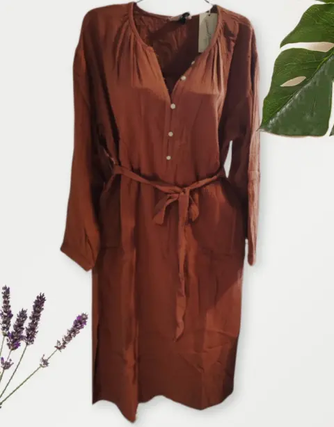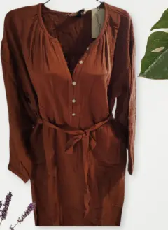 Lindo vestido color marrón 🤎. Es totalmente nuevo, no tiene ningún detalle y cuenta con etiqueta 👍🏼Medidas Aproximadas Talla M Axila-axila 60cm x un lado Largo de manga 54cm De hombre o hasta abajo 118cm