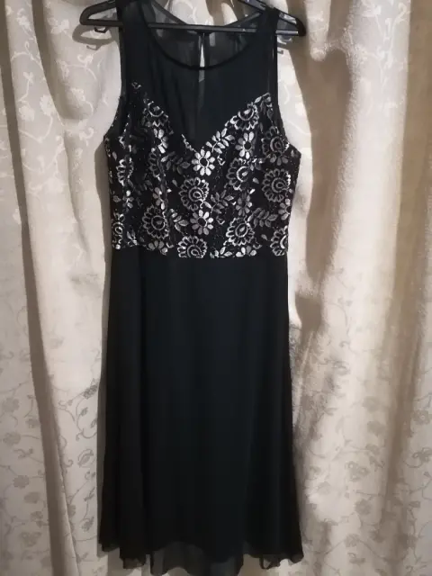 Para esa fiesta cuando llegas de tu trabajo con prisa, lindo vestido combinado negro y la blusa con bordo en dorado