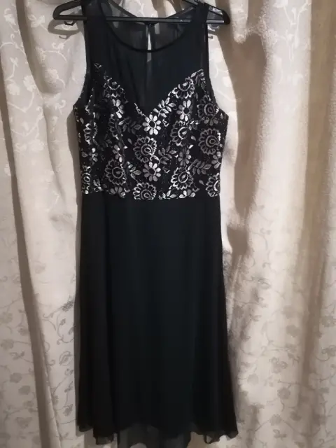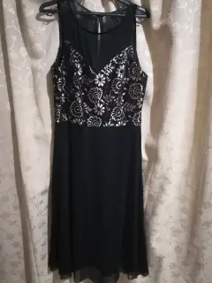 Lindo vestido corto combinado con dorado. Para esa fiesta cuando llegas de tu trabajo con prisa, lindo vestido combinado negro y la blusa con bordo en dorado
