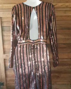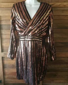 Lindo vestido de lentejuelas. Vestido corto negro con lentejuelas color ocre, escote en V y apertura en la espalda.Nuevo solo se utilizó una sola vez.