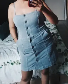 Es un lindo vestido de pana muy a la moda q se puede usar en diferentes épocas del año en épocas de frío con una blusa de manga larga cuenta con dos bolsas laterales los tirantes son ajustables