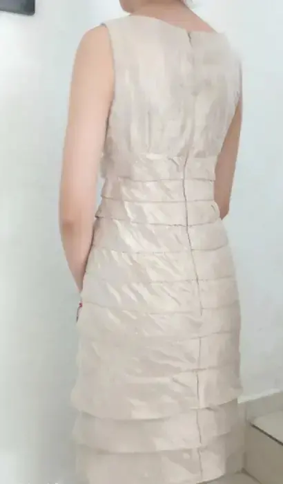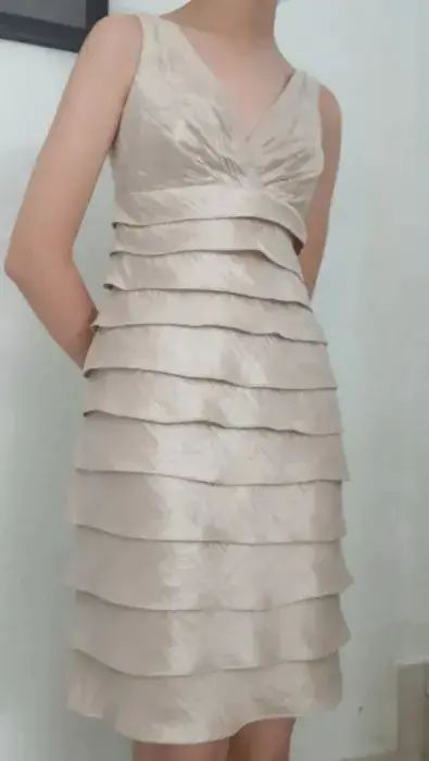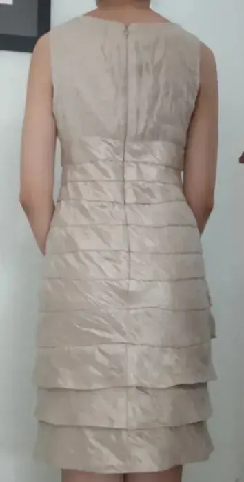 Hermoso vestido de olanea con estructura, color dorado satinado, ideal paracualquier ocasión especial, su corte amolda perfectamente a la silueta, se ve espectacular