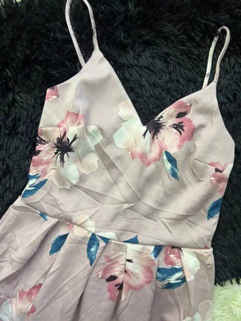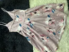 Lindo vestido floreado. Tono lila , floreado Talla ch y no da a medianoNo se transparenta Tiene un par de puestas Sin detalles Súper lindo