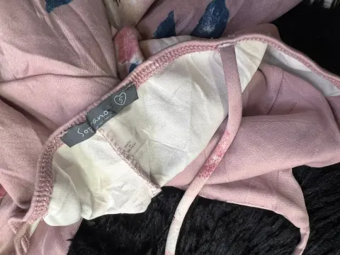 Tono lila , floreado Talla ch y no da a medianoNo se transparenta Tiene un par de puestas Sin detalles Súper lindo
