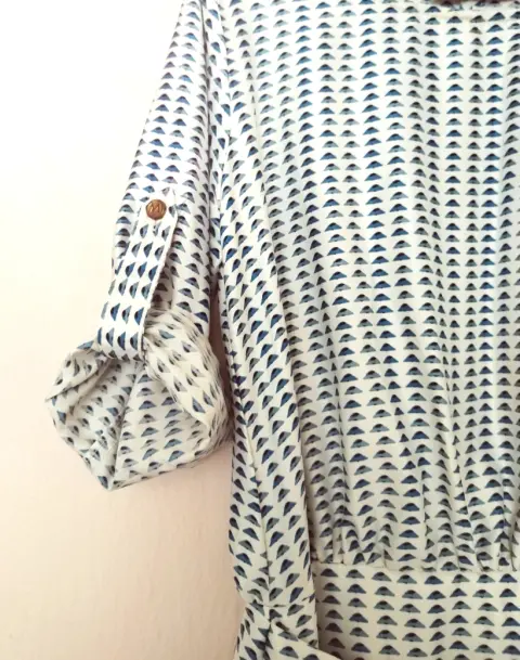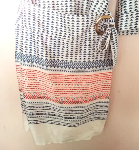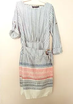 Lindo vestido multicolor ideal para un día de oficina sus mangas se pueden doblar para hacerlas mas cortas trai su forro por dentro lo q hace q no se transparente nada en excelentes condiciones