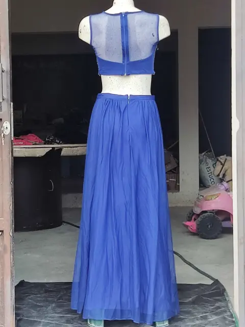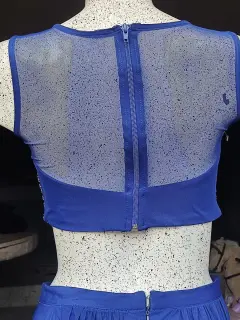 Hermoso vestido dos piezas color azul rey, con aplicaciones de chaquira y pedreria