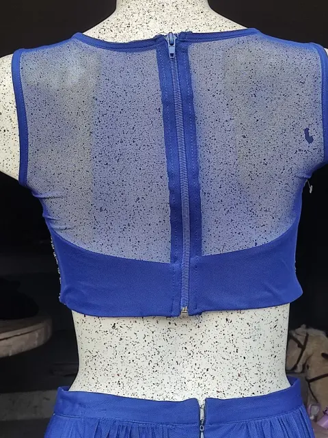 Luce espectacular. Hermoso vestido dos piezas color azul rey, con aplicaciones de chaquira y pedreria