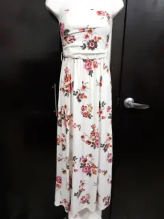 Maxi floreada. Bellisimo vestido máximo, estraple, de algodón. Fresco, versátil y ligero.
