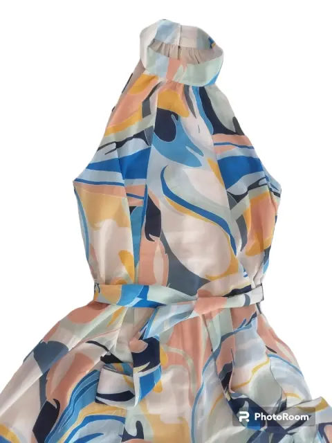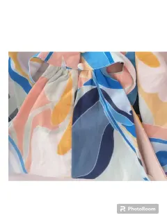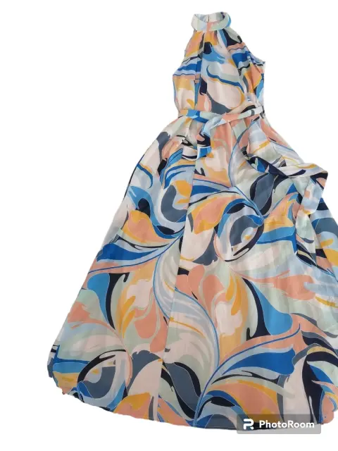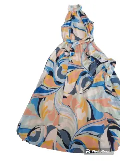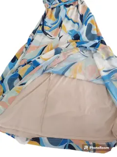 Vestido largo con estampado y cinta a la cintura para ajustar al talle, forro en color carne, super fresco