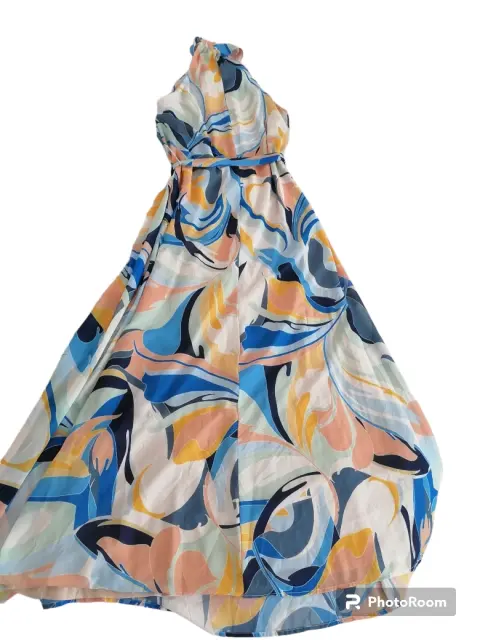 Maxi vestido. Vestido largo con estampado y cinta a la cintura para ajustar al talle, forro en color carne, super fresco