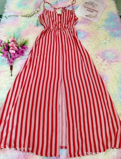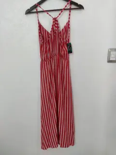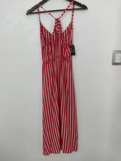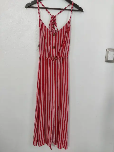 Maxi Vestido a rayas y tirantes. Divino!Nuevo con etiquetaAbertura al frente y tiene 3 botones de adorno.Resorte en cinturaTalla SSin detallesSuper cómodo y ligero