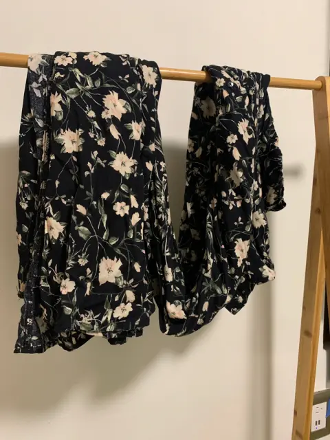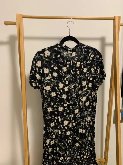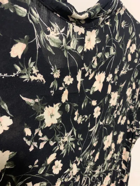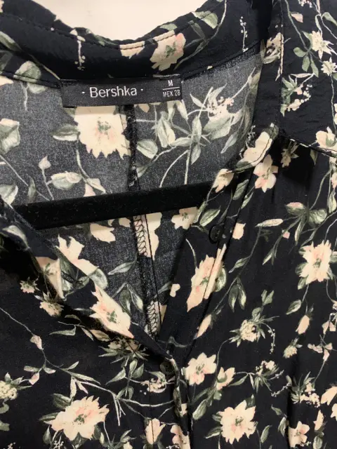 Maxi vestido bsk. Maxivestido estilo romántico, tela fresca, estampado floral, corte amplio al largo, cierre botones frontales, cuello camisero , talla M