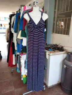 Maxi vestido color azul con blanco. Maxi vestido , tela muy suave , talla s, pero queda hasta un m , estira , viene amplio , nuevo sin etiqueta