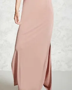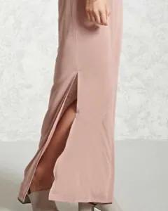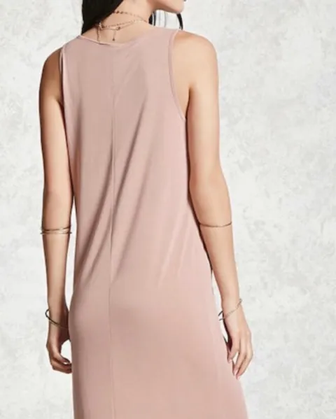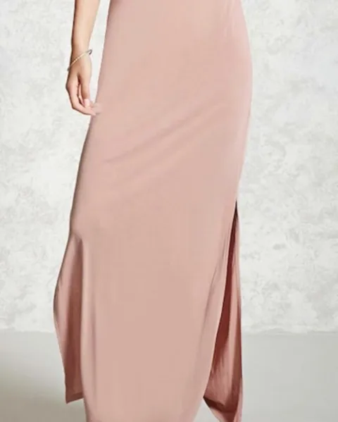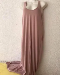 Maxi vestido, fresco stretch con abertura en la pantorrilla, color rosa palo marca Forever 21 Original,para un outfit casual y de vestir.