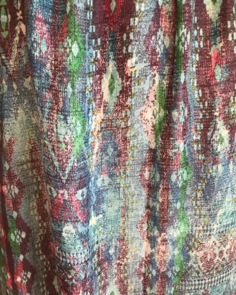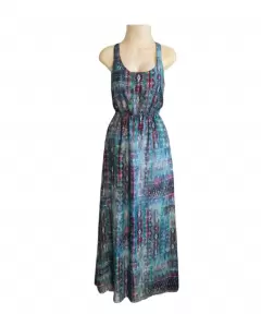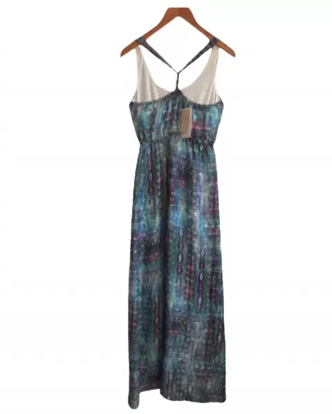 Vestido largo con estampado boho en tonos azules, elástico en la cintura y forro.NUEVO & ETIQUETADOLigero y fluido, ideal para eventos de día o la playa.Talla S (axilas 43 cms y 1.52 cms de largo)SIN DETALLES