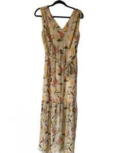 Maxivestido. Hermoso Maxivestido con corte en cuello y espalda en v, con cinturón, tiene un fondo para que la tela no se llegue a transparentar