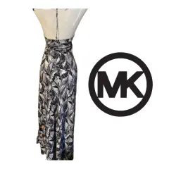 Maxivestido estampado Michael Kors seda. Maxivestido MK t6 cuello halter, cierre lateral con broche, varilla lateral, copas preformadas, caída suave y ligera, escote en espalda, elástico en espalda 39cm axila a axila 138cm largo MATERIAL 100% SEDA