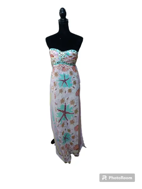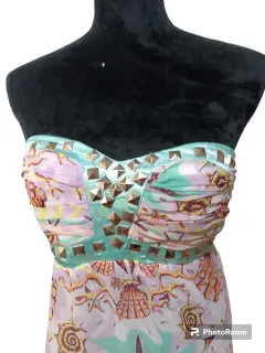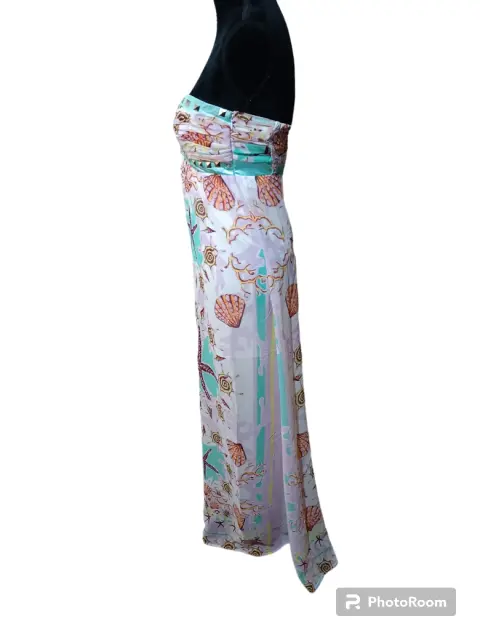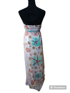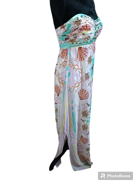 MAXIVESTIDO STRAPPLE TALLA S. MAXIVESTIDO STRAPPLE, CON ABERTURAS EN LOS COSTADOS, MIDE DE DE AXILA A AXILA 40 CM, 70 CM DE CINTURA, 134 CM DE LARGO