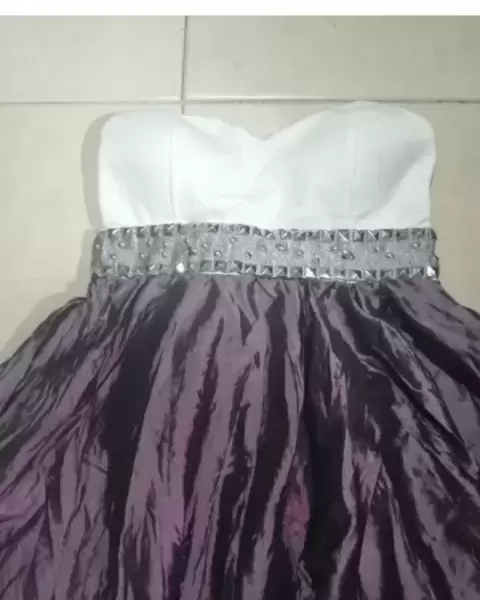 Mini vestido. Muy lindo con silicon en el busto para que no se baje, estoperoles bajo el busto no le falta ningunoCintas para hacer moño atrás muy amplio