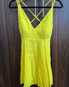 Hermoso vestido amarillo, el tono esta súper lindo, es corto llega arriba de la rodilla, realmente es mini, Perfecto para la playa. Solo lo use una vez, tiene copas integradas para que lo uses sin Bra.