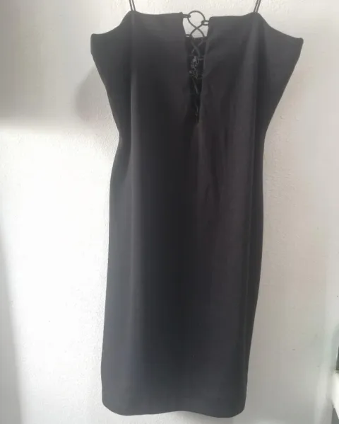 Vestido negro corto con escote en el pecho el cual se ajusta al tamaño de tus bubis, solo se uso una vez por lo que esta en perfecto estado, cuenta con estrech por lo que puede estirar. De axila a axila mide 38 cm y del centro del escote a abajo mide 50 cm. Te encantara ya que se ajusta a tu cuerpo.