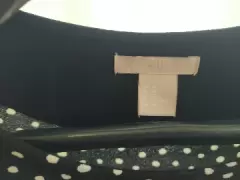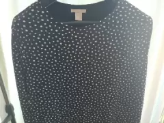 Mini vestido, lycra negro con lunares. Mini vestido de lycra, negro con lunares blancos, falta asimétrica, manga larga