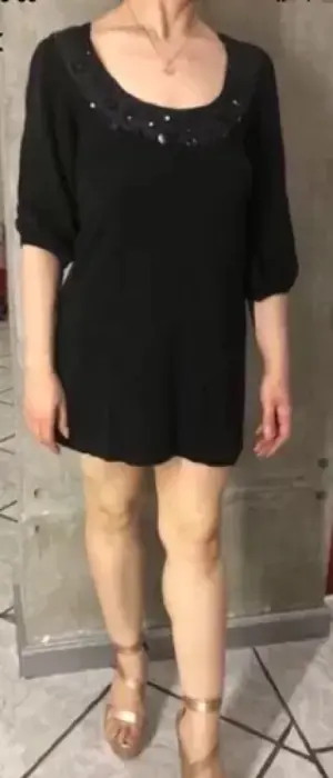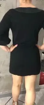 Mini vestido negro con piedras en el cuello. Manga bombachas, cuello redondo muy lindo y súper favorecedor.