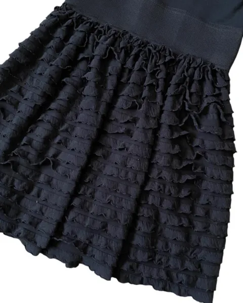 Mini Vestido Negro Olanes. Vestido corto con volumen en la falda y top ceñido. Hace una figura muy linda. Sin detalles. •Los envíos se realizan todos los días miércoles•