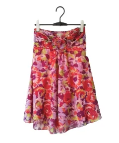 Mini Vestido Strapless floral Forever 21. Vestido de seda sintetica strapless corte imperio corto fluido de la marca Forever 21 talla M. El producto es usado en excelentes condiciones sin detalles. Proviene de un hogar libre de humo de tabaco y mascotas.MedidasSisa: 37 cms, estirado 43 cmsLargo: 66 cms100% poliéster