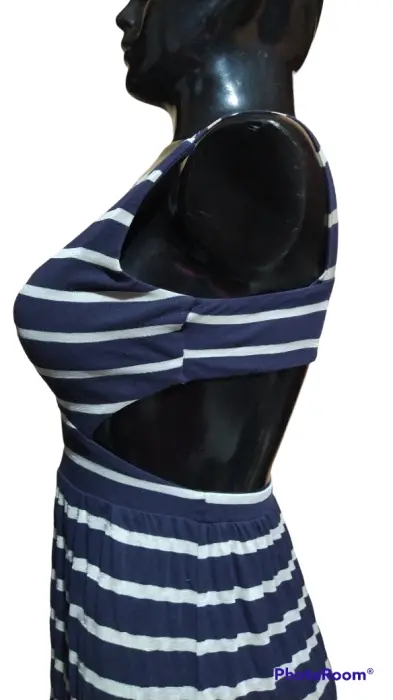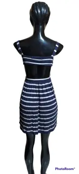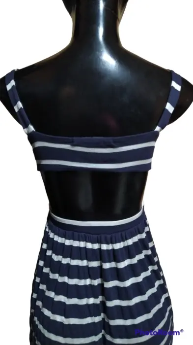 Minvestido corto muy elegante de espalda descubierta azul marino con perla (Es brilloso el color perla) marca OCEAN DRIVE con las siguientes medidas:Talla SAxila-axila 47Cintura 90 cms (Estirando)Largo 62 cmsNuevo c/etiquetaSin forroSpandexCualquier duda estoy para apoyarte