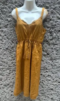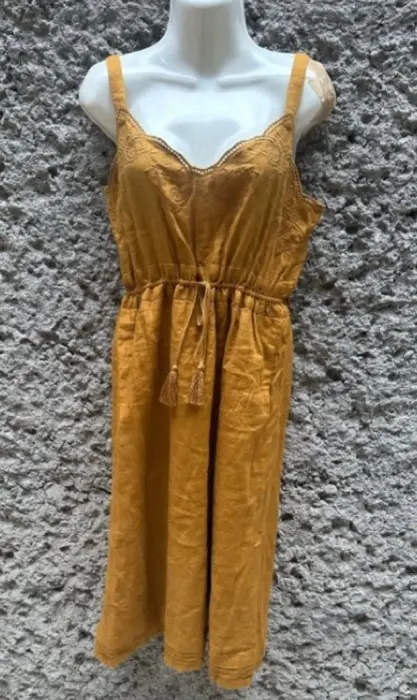 Moderno vestido j crew talla 4 en color mostaza tipo de tela lino sin detalles en prefecto estado muy bonito