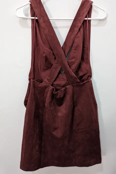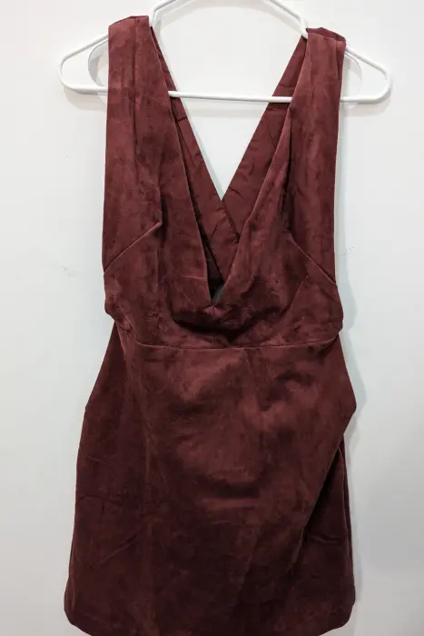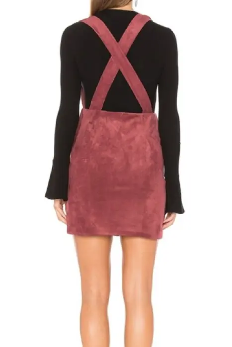 Mono Vestido de Ante. Estilo chic urbano, su diseño sin mangas y cuello en V lo hacen perfecto para capas, permitiéndote combinarlo con una blusa de manga larga para un look de oficina o con una camiseta para un estilo más casual. El material de ante añade una textura suave y lujosa, mientras que su corte ajustado y corto acentúa la silueta de manera favorecedora. Ideal para un día de trabajo o de noche en la ciudad.