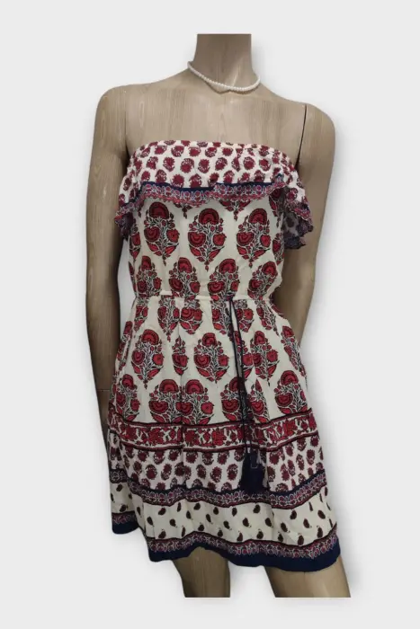 MOSSIMO Vestido Strapless Dama Rayón Beige M 8. MOSSIMO Vestido Strapless Dama Rayón Beige M 8Marca: MOSSIMOOrigen: ChinaMaterial: 100% RayónTalla: M - 8Estilo: CasualPatrón: StraplessColor: BeigeCierre: ElásticoPecho: 38 cmCadera: 45 cmCintura: 31 cmLargo: 62 cmHombro: Sin MedidaMangas: Sin mangasRopa de USO en muy buen estadoModelo Único Lo que ves es lo que comprasAclara todas tus dudas antes de comprar
