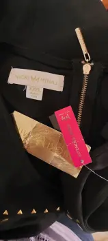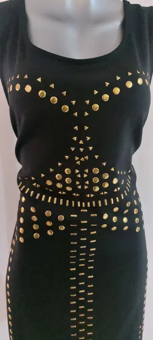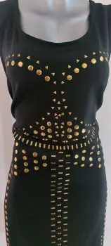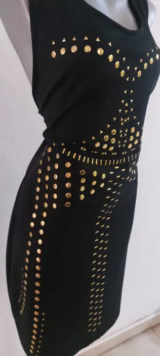 Vestido negro con estoperoles dorados de tela spandex o strech. Super lindo. A estrenar chicas