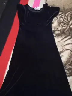 Nuevo sin etiqueta. Es un vestido azul marino de tela terciopelo con elástico en las mangas y es largo