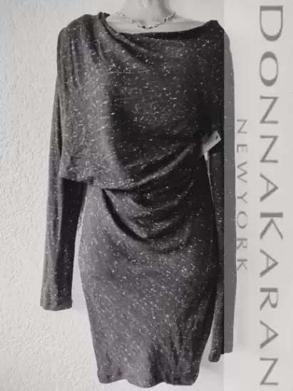 Nuevo vestido DKNY 😍. Nuevo, Jaspeado con cuello que cae a la altura del pecho, tela no muy gruesa, estira bastante, queda sin problema hasta L y podría quedar hasta XL . Detalle en V poco pronunciado en la parte trasera( penúltima foto)Axila a axila 55cmCintura 45cmLargo 98cm