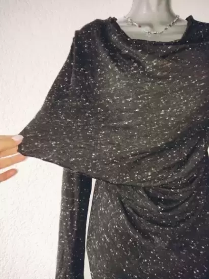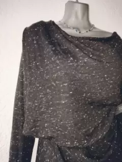 Nuevo, Jaspeado con cuello que cae a la altura del pecho, tela no muy gruesa, estira bastante, queda sin problema hasta L y podría quedar hasta XL . Detalle en V poco pronunciado en la parte trasera( penúltima foto)Axila a axila 55cmCintura 45cmLargo 98cm