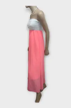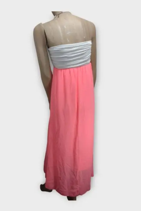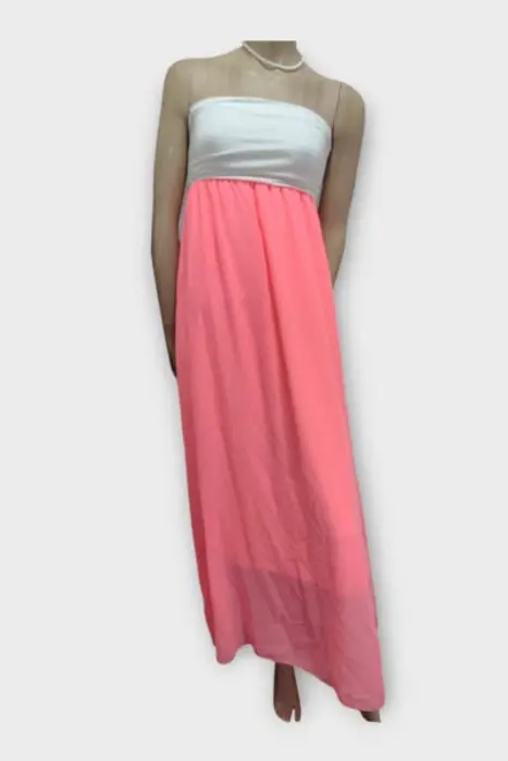NYMPHE Vestido Strapless Polyester Coral S. NYMPHE Vestido Strapless Dama Polyester Coral SMarca: NYMPHEOrigen: ChinaMaterial: PolyesterTalla: SEstilo: FiestaPatrón: StraplessColor: Coral y BlancoCierre: ElásticoPecho: 29 cmCadera: 48 cmCintura: 25 cmLargo: 120 cmHombro: Sin MedidaMangas: Sin MangasRopa de USO en muy buen estado