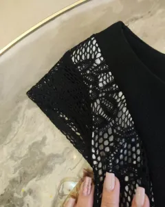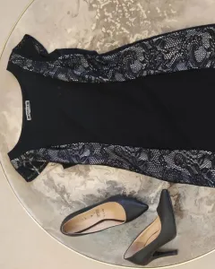 Vestido corto color negro con vivos en tonos blancos cubiertos con encaje vestido formal ideal para oficina talla M, cuenta con costuras traseras que realzan la figura.