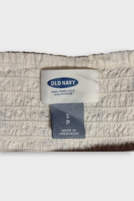 Old Navy Vestido Dama Blanco con Estampado Floral S/CHVestido Old Navy primaveralMarca: Old NavyOrigen: IndonesiaMaterial: RayónTalla: S/CHEstilo: PrimaveralPatrón: FloralColor: Blanco con Estampado FloralCierre: AbiertoPecho: 36 cmCadera: 39 cmCintura: 32 cmLargo: 76 cmHombro: No AplicaManga: Sin MangasRopa de USO en muy buen estado