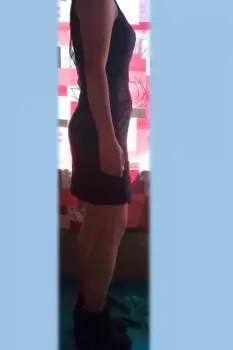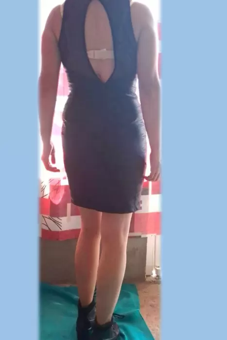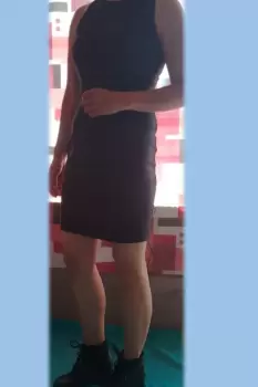 vestido de licra color negro, tiene una abertura en la parte de la espalda, los botines son talla tres y tienen agujeta la medida aproximada del tacón es de 5cm, ambas prendas en buen estado.