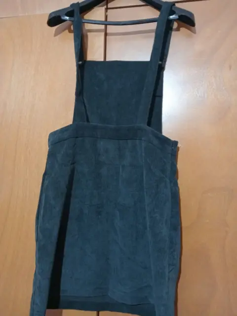 Overol pana negro, con tirantes, botones metalizados, bolsas frontales ,talla S.