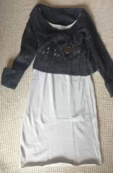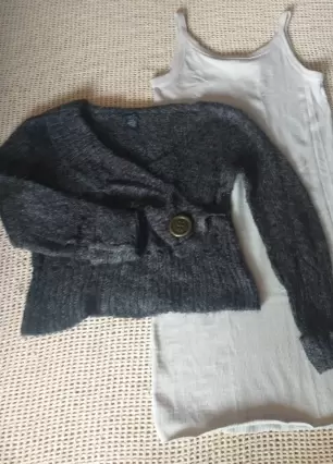 Pack crop top color negro/con botón grande al frente/diseño en cuello/talla (XL)(hombros.49/axila.52/largo 56/ marca Rue 21Vestido color gris/ talla (L) (axila 45/largo 1.3) Spandex/marca H&M