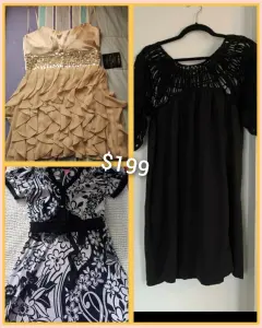 Pack de vestidos 3. El beige y el negro son nuevos el negro no tiene etiqueta y el negro con blanco es usado en buen estado. Resuelve todas tus dudas antes de comprar