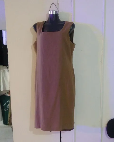 Pierre Christine vestido cafe sin mangas, talla 14, cuello redondo, el forro cafe se sale un poco por la parte inferior como se nota en fotos.